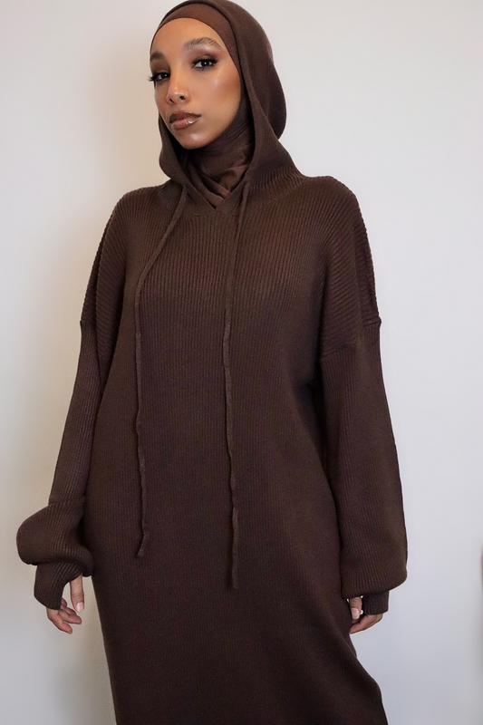 COFFEE - Hooded Knit Dress