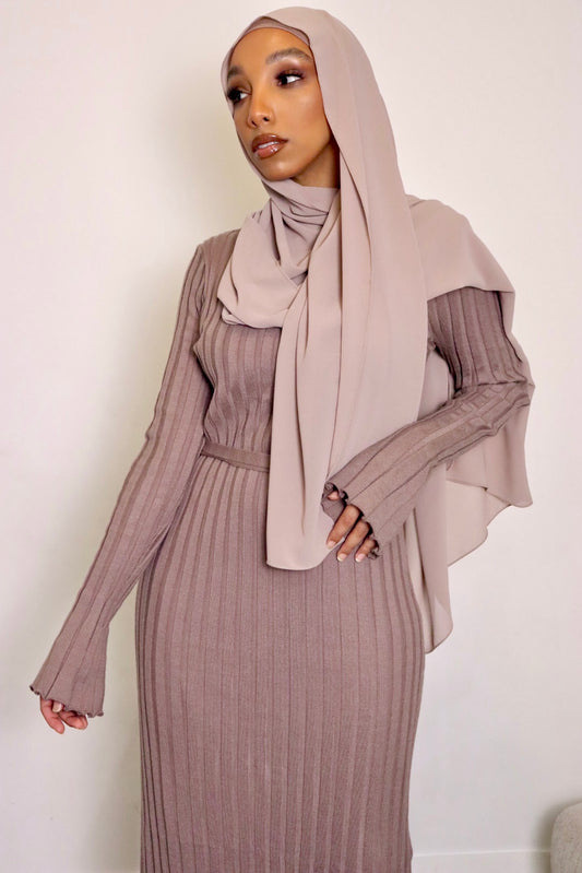 TAUPE - SLIM RIBBED MAXI DRESS