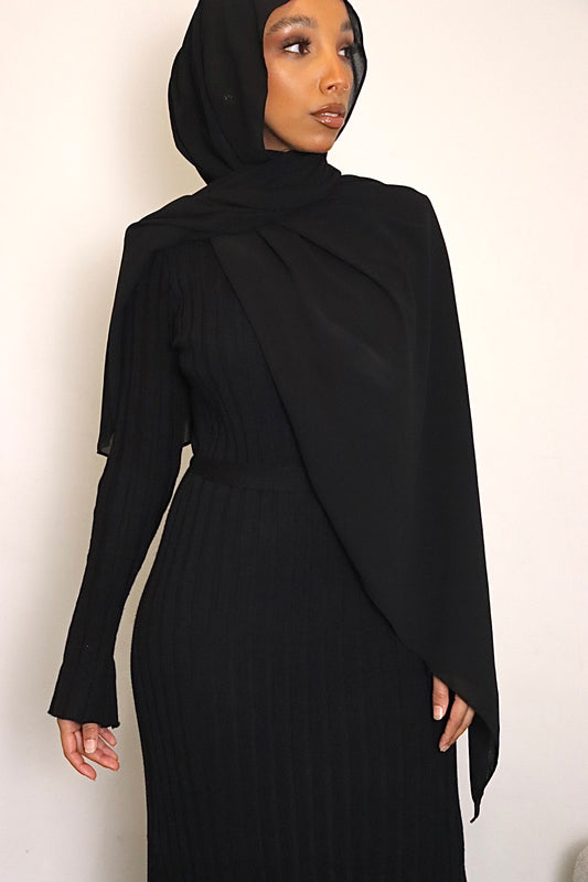 BLACK - SLIM RIBBED MAXI DRESS