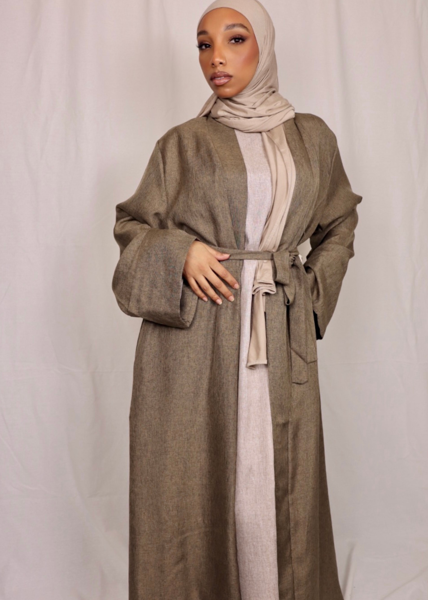 Get summer ready with our new light weight breathable poly linen Medina open abaya. The Medina Open Abaya is perfect for your summer getaways or your leisurely stays.
